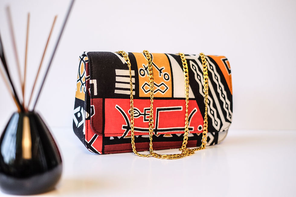 Chaque pièce est confectionnée à la main dans notre atelier, avec des tissus wax soigneusement choisis